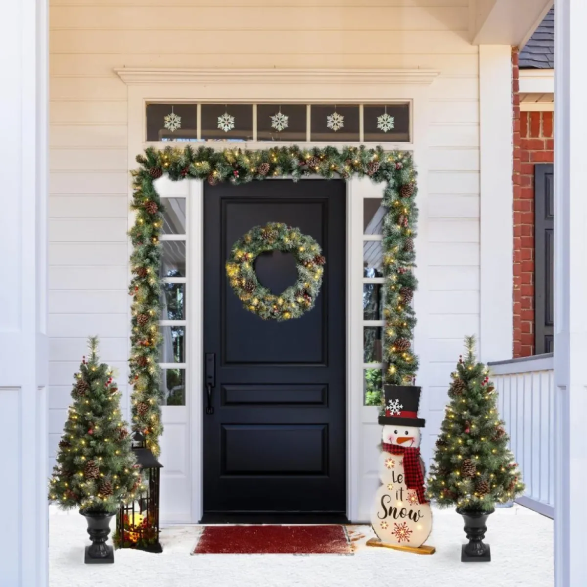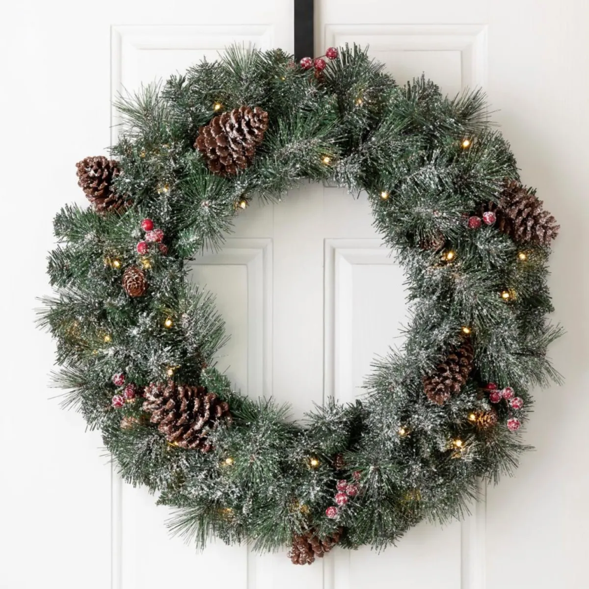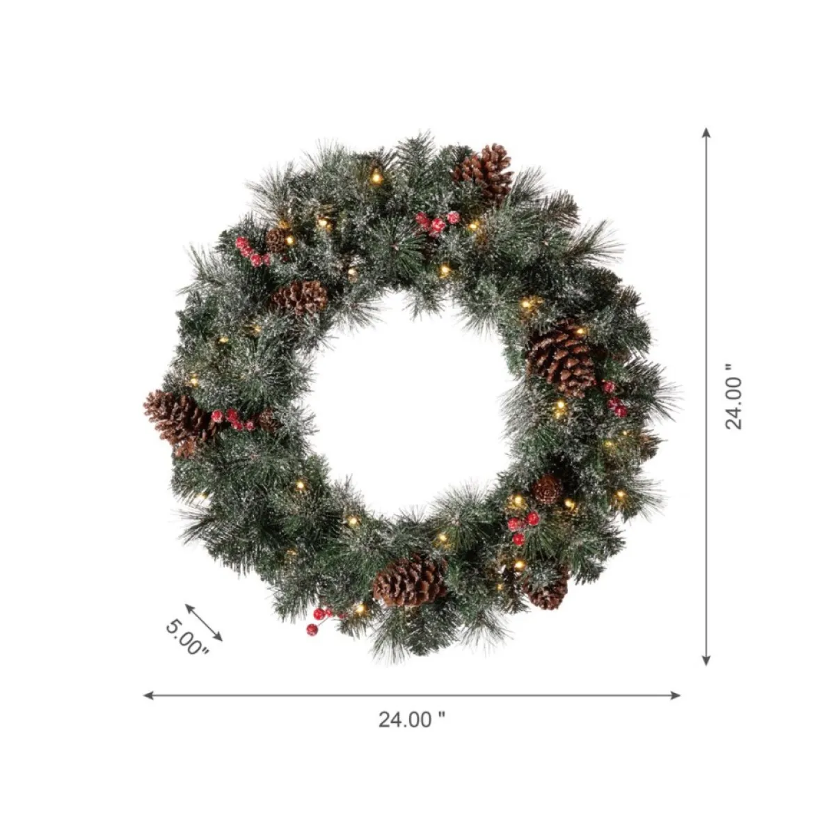 This Set Sale Several Creating The Perfect Holiday Touch For Your Home. The 24″ D Christmas Wreath Crafted With Frosted Pine Needle Tips, Pinecones And Berries, It Will Add A Touch Of Charming Light And Cheer To Your Front Door Or Window During Your Holiday Season. The 9-Foot Garland Provides Ample Length To Easily Adorn Doors, Mantles Or Banisters, Making This Versatile Decoration Ideal For Any Situation. Each Of The 180 Tips Is Modeled To A Pine Tree’s While The Frosted Design Creates A Winter Wonderland Around Your Home. Several Large Pinecones And Berry Decorations Among The Needles Add An Extra Holiday Touch To This Garland.