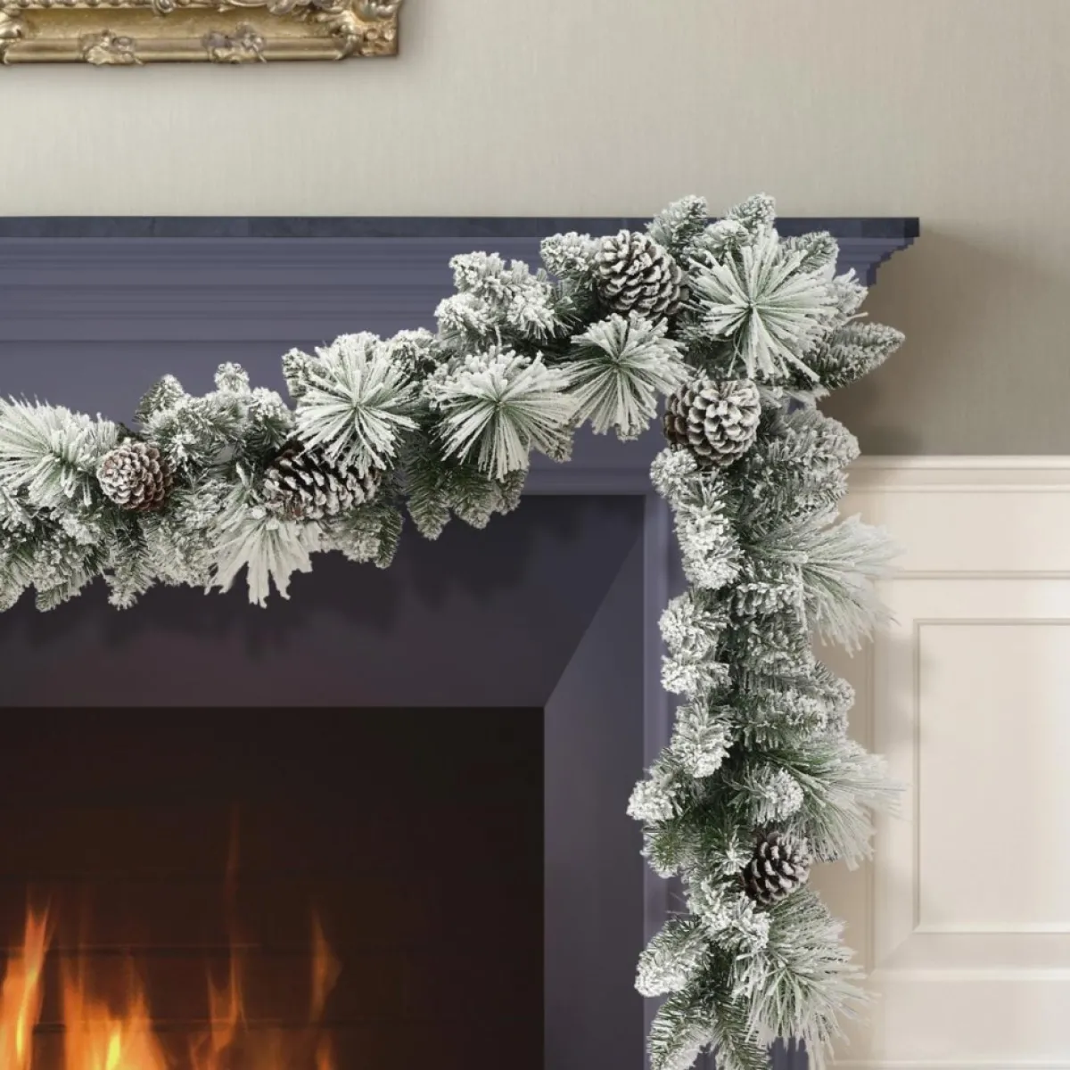 Puleo International Wreaths, Garlands & More | 9′ 10″ Flocked Berkshire Spruce Garland