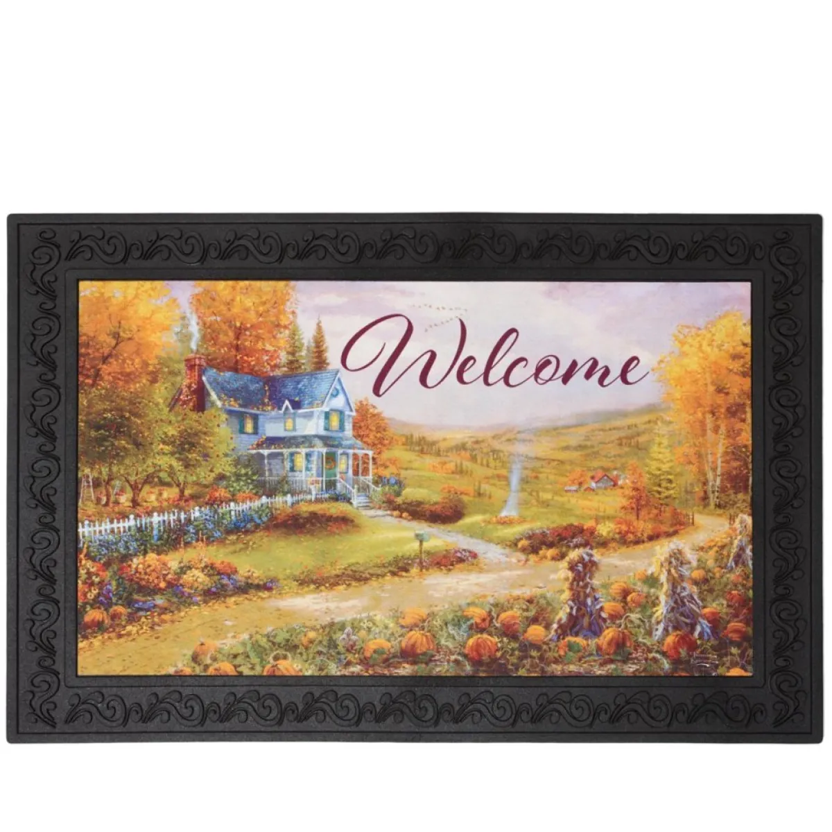 Welcome Guests To Your Home With The Art Of Thomas Kinkade. This Doormat Set Includes An Everyday Design, A Fall Design And A Christmas Design To Cover Your Decorating Needs For The Year.