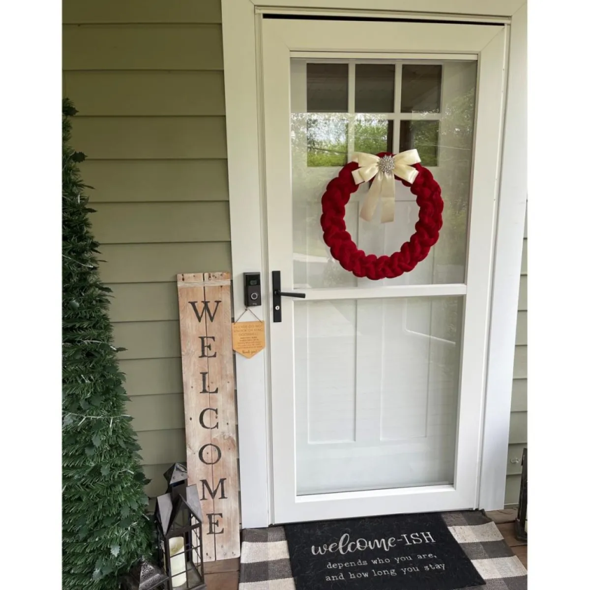 Elevate Your Holiday Decorations With This Braided Velvet Wreath. Available In Your Choice Of Ivory Or Red, It Features An Oversized Satin Bow Adorned With A Jeweled Ornament To Make A Sparkling Statement Inside Your Home.