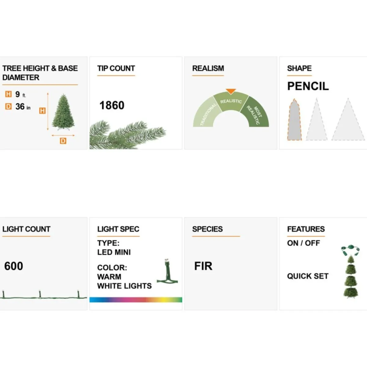 Glitzhome 9 Ft. Preloaded Led Pencil Fir Artificial Christmas Tree