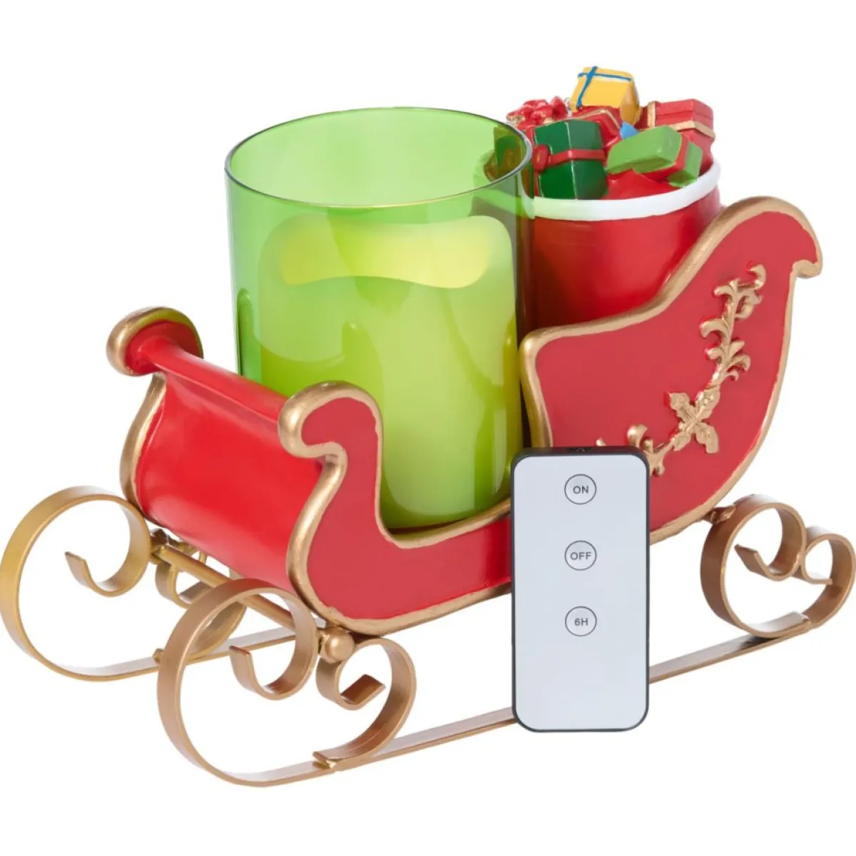 Here’s A Great Addition To Your Christmas Decor. The Base Features A Sleigh With A Candle Inside. The Candle Has A 6 Hours On/18 Hours Off Timer. You Also Receive A Remote Control.