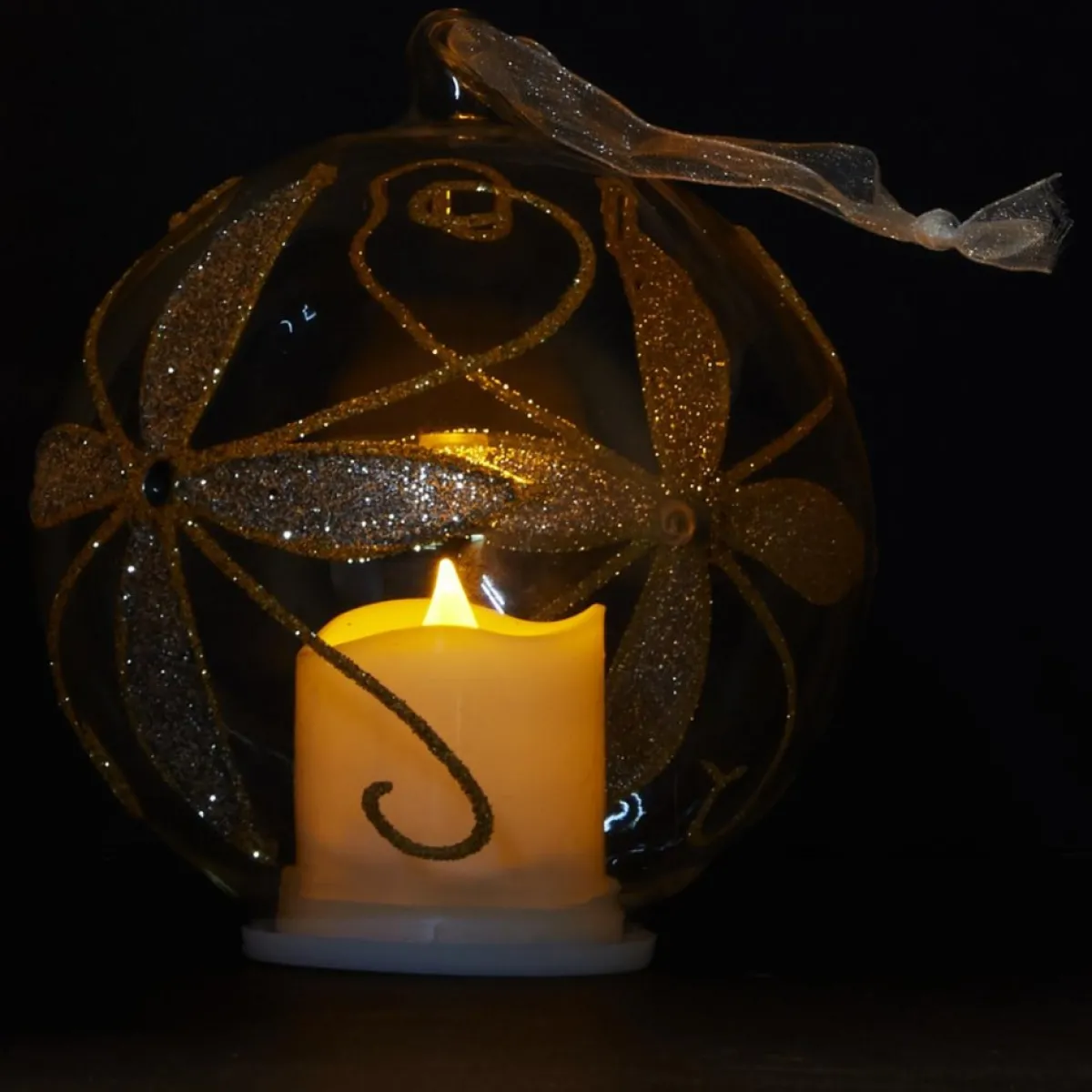 Illuminate Your Tree Or Tabletop With This Trio Of Ornaments. Each Glass Globe Is Adorned With Glittery Designs In Your Choice Of Festive Colors. A Flameless Votive Gently Flickers Inside, Providing Soft Illumination Among Your Holiday Decor For Four Hours Each Day. Keep All Three For Yourself, Or Give As Gifts!